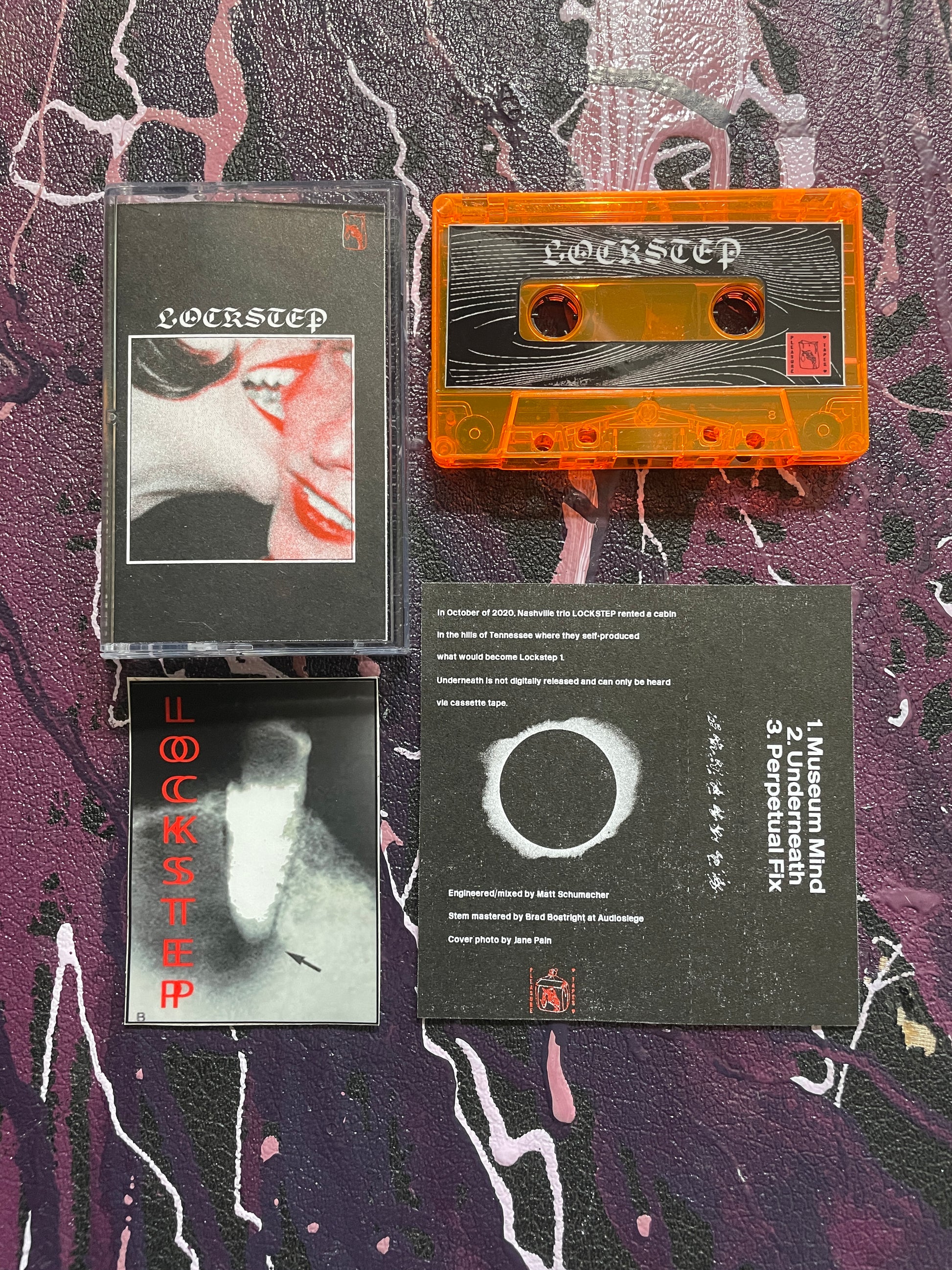 Homedubbed translucent orange high-bias cassette tapes. Cover art by Jane Pain. Jcard sticker label and layout by Pleasure Tapes. Jcards risographed by Secret Room Press.