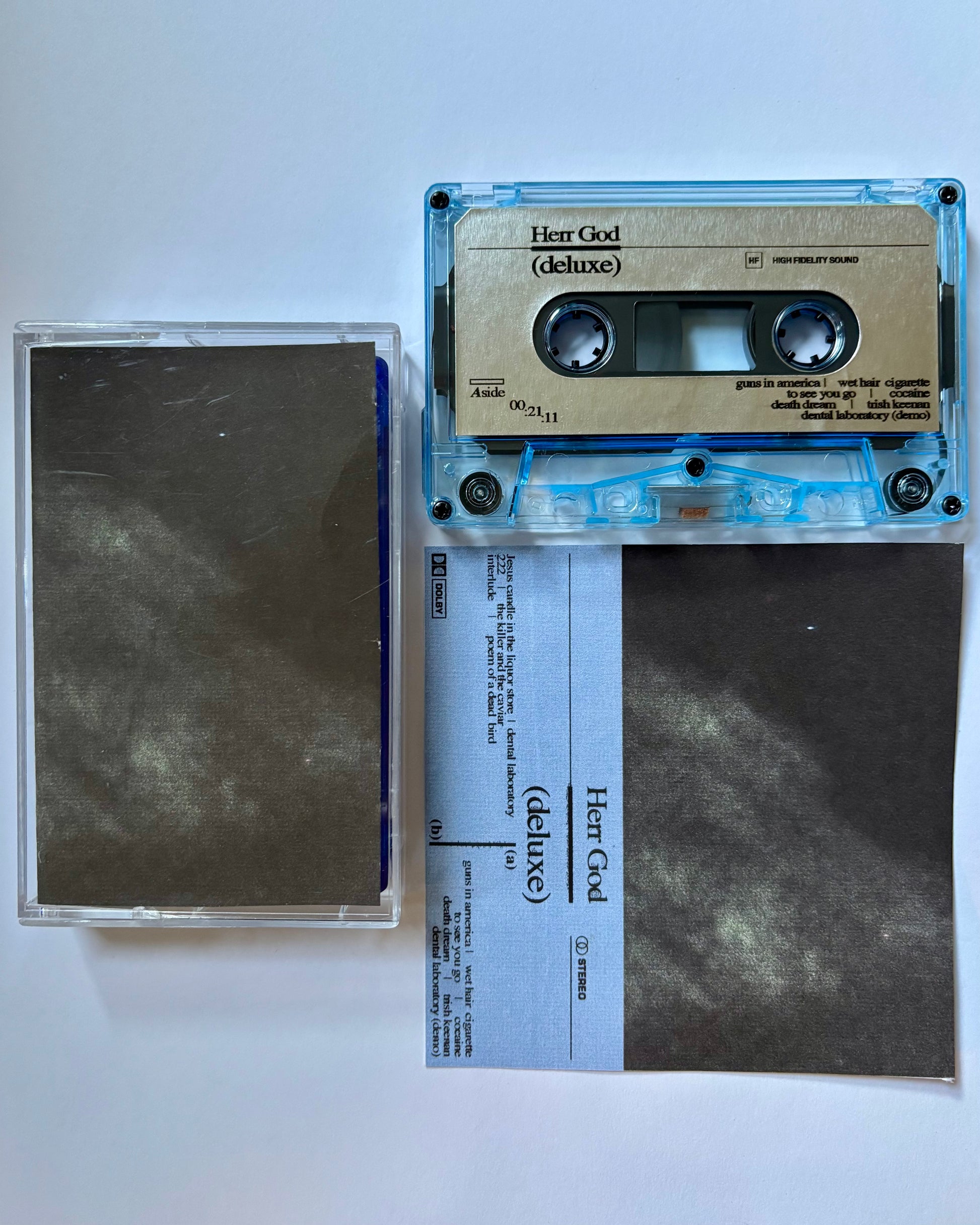 Limited edition of homedubbed, real time duplicated, hand assembled cassettes with full print A/B labels on silver foil. Double sided J-card printed on 110lb cardstock.
