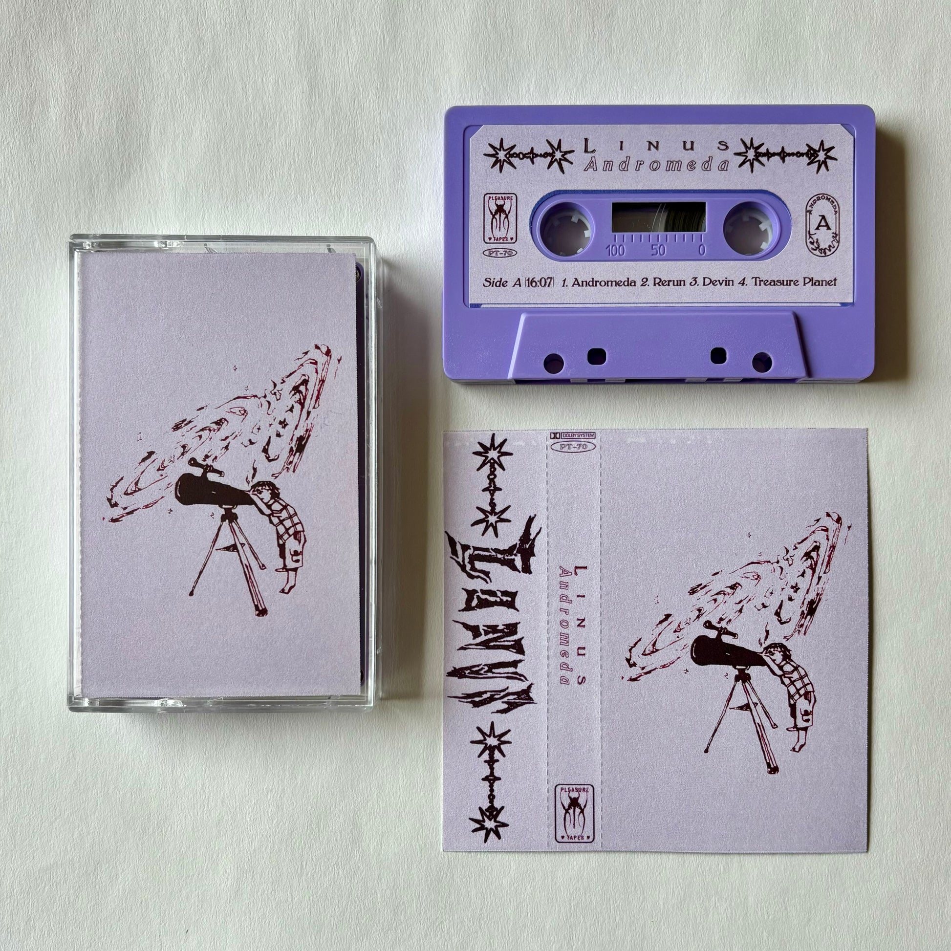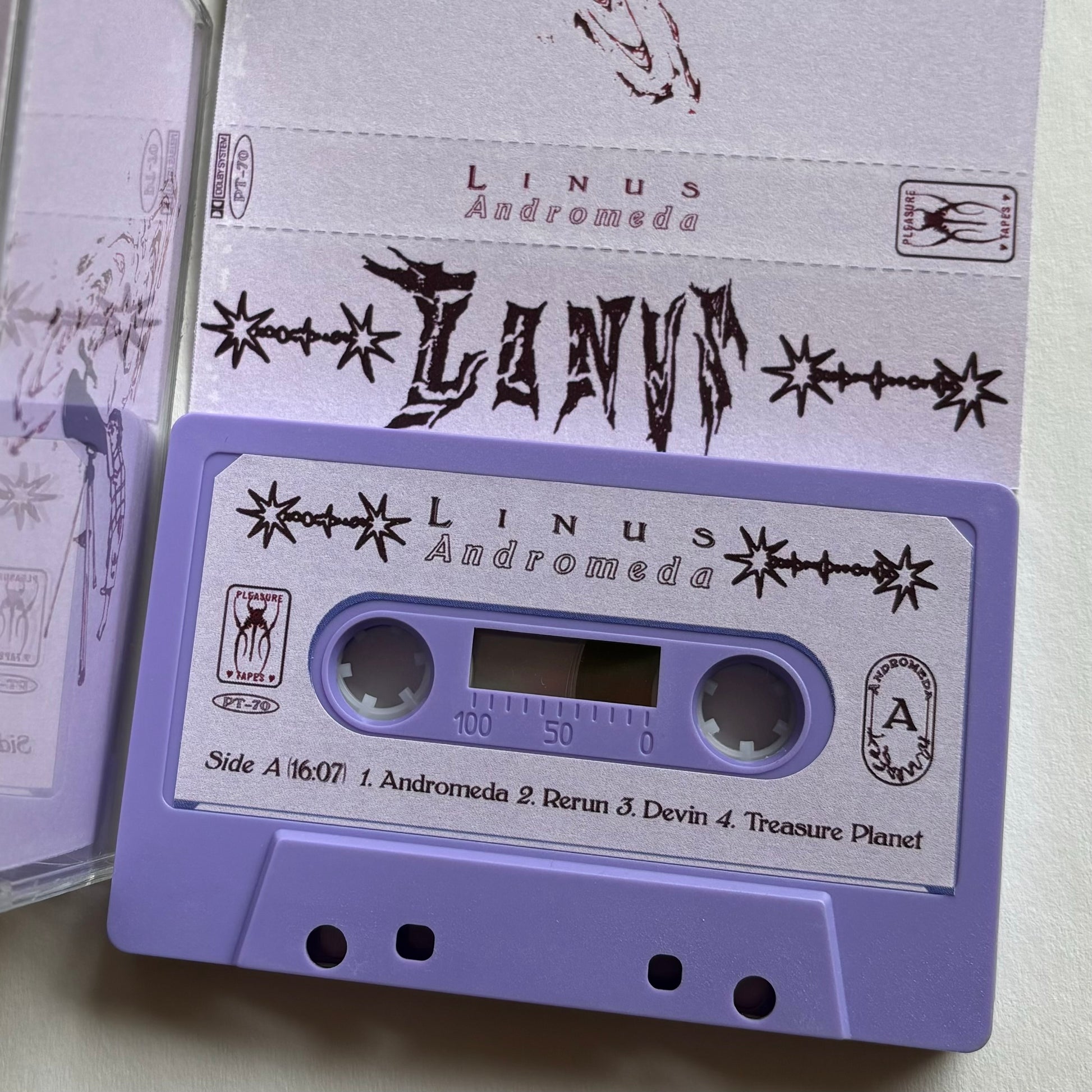 Homedubbed high-bias lavender tapes. Hand assembled. A/B labels & J-card designed by Pleasure Tapes with adornments by Switchblade.JPEG. Cover art by Lucy Graham, inner photo by Echo Scammahorn.